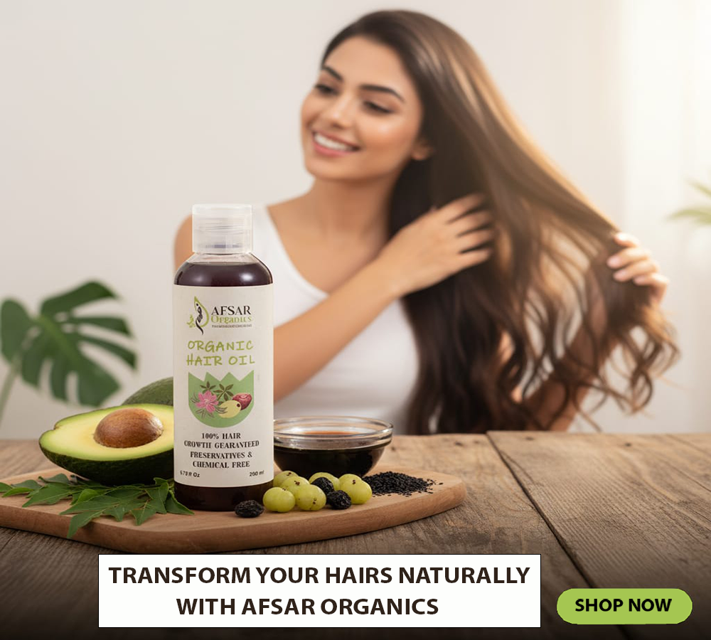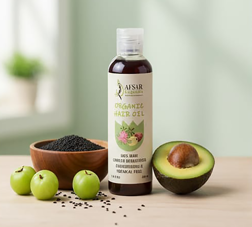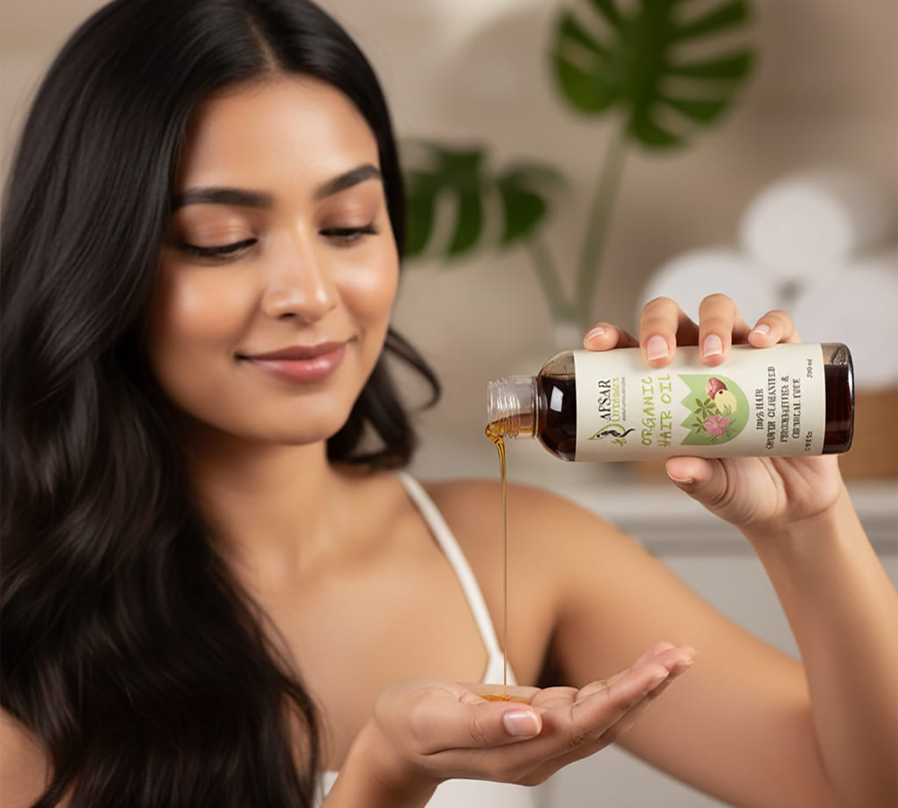 Introducing Afsar Organics Hair Oil — a luxurious blend of 18+ powerful Ayurvedic herbs and 5 deeply nourishing essential oils, crafted to transform dull, damaged hair into a crown of strength and shine.